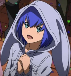 Luna tenía el pelo de color azul oscuro y ojos azules. Llevaba un impermeable azul con archivos adjuntos de orejas de conejo en la capucha y un par de botas de juego.
